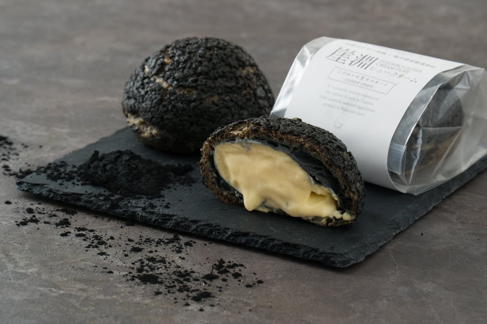 東尋坊の岩肌を思わせる真っ黒ザクっとシューには、日本海の海水で手作りされた越前塩を使用。 中にはとろけるなめらかさを追求した、こだわりの生カスタードクリームがぎっしり詰められています。是非お召し上がりいただき、東尋坊を感じてください。